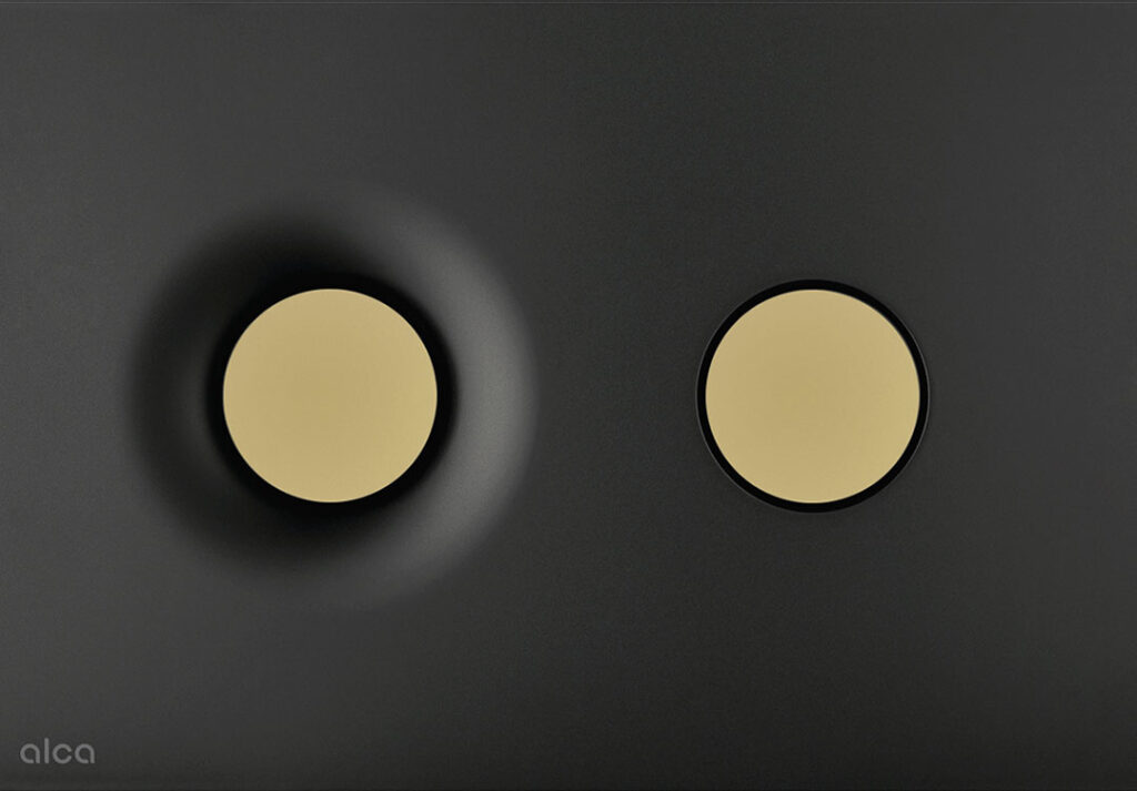 Flush plate for pre-wall installation systems, black-matt/gold-matt