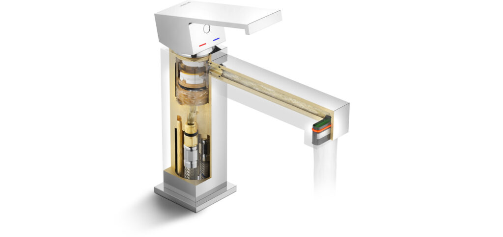 فضای باز و نورانی، با عناصری هندسی و مستحکم، توازن مربعشکل مجموعه Mia را به نمایش میگذارد. این کالکشن حسهای ما را بیدار کرده و روح مینیمالیستی آن را نمایان میسازد. هواده مستطیلشکل Neoperl® با جریان آبشاری، ساختار قوی این طراحی را به نمایش میگذارد.